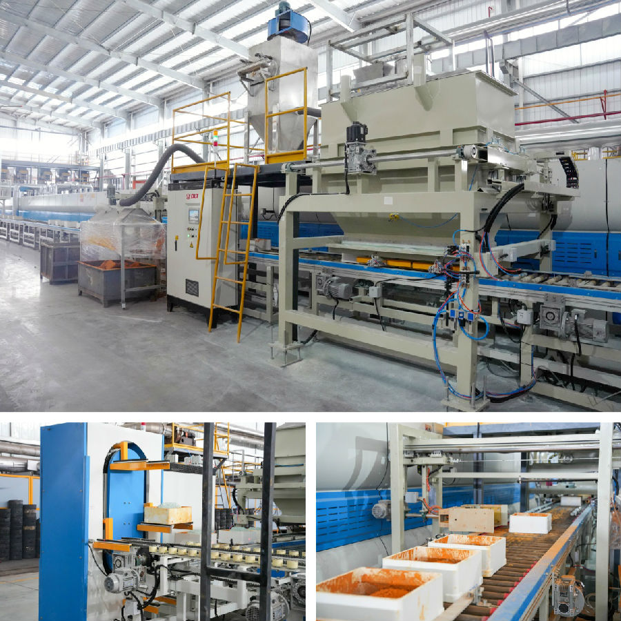 自動(dòng)裝卸、連續(xù)式升降機(jī)、輸送線等配套裝備,均是德力泰自主研發(fā)的專利技術(shù)。具備運(yùn)行穩(wěn)定、效率高、自動(dòng)化程度高、電耗低、減少磨損等優(yōu)點(diǎn)。尤其是直通式移動(dòng)料倉(cāng)在行業(yè)內(nèi)更是首次應(yīng)用,不僅解決了超細(xì)粉下料的難題,還可一次性快速填充多個(gè)匣缽,創(chuàng)新性滿足生產(chǎn)需求,也為企業(yè)自動(dòng)化生產(chǎn)提供了完整的解決方案。