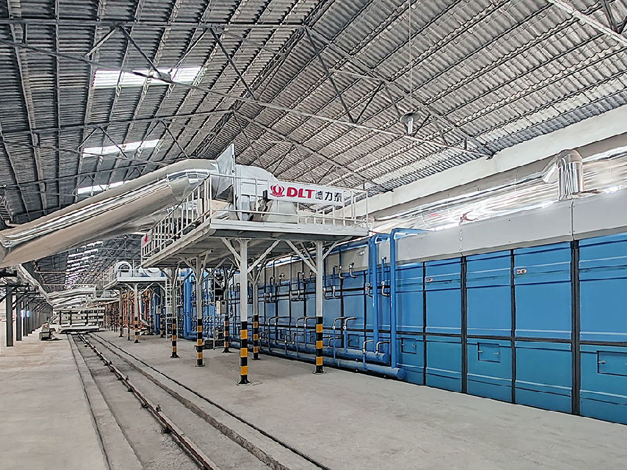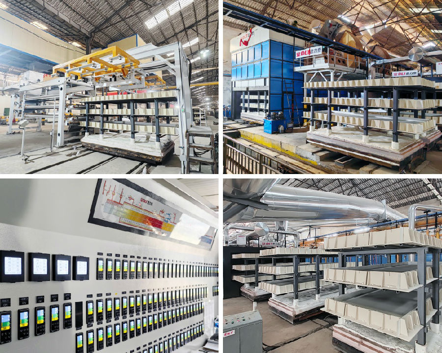 滿足連續(xù)式、大規(guī)模生產(chǎn)需求,且充分展現(xiàn)燒成穩(wěn)定、能耗低、自動化程度高等優(yōu)勢。與常規(guī)燒制2400mm或3000mm寬度產(chǎn)品的隧道窯相比,該隧道窯實現(xiàn)了關(guān)鍵突破,不僅刷新寬度紀(jì)錄,還可穩(wěn)定燒制3600×1200×150mm 規(guī)格的大尺寸雕刻板產(chǎn)品,設(shè)計產(chǎn)能336m3/ 天。
