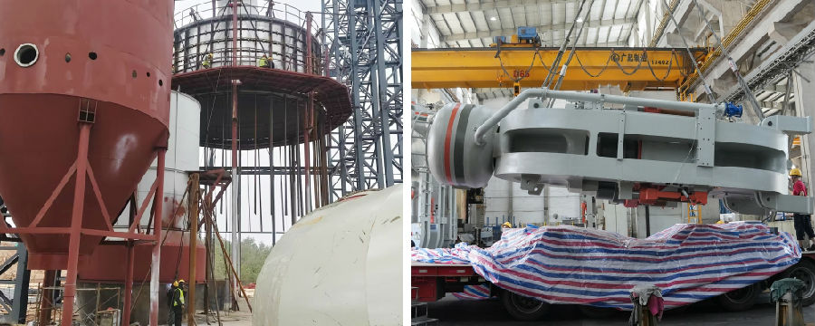 本次引進(jìn)的連續(xù)式化漿系統(tǒng)、噴霧干燥制粉系統(tǒng)和YP7890自動液壓機(jī)等,正在肇慶和廣西兩大基地如火如荼施工中,爭取早日點火投產(chǎn)。
